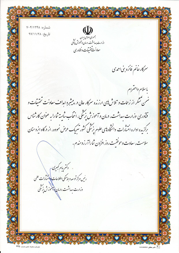 اخبار > کارشناس انتشارات دانشگاه علوم بهزیستی و توانبخشی، نفر اول کارشناسان برگزیده انتشارات کشوری شد