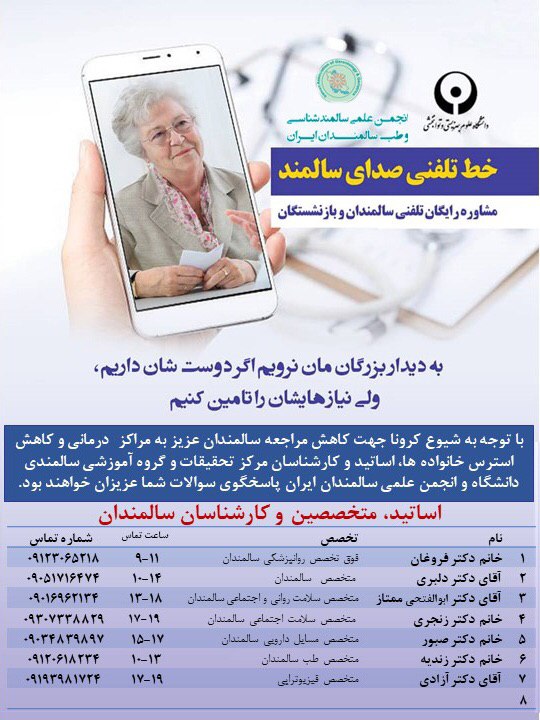 دانلود فايل : فهرست متخصصین حوزه سالمندی.pdf ( 457KB )