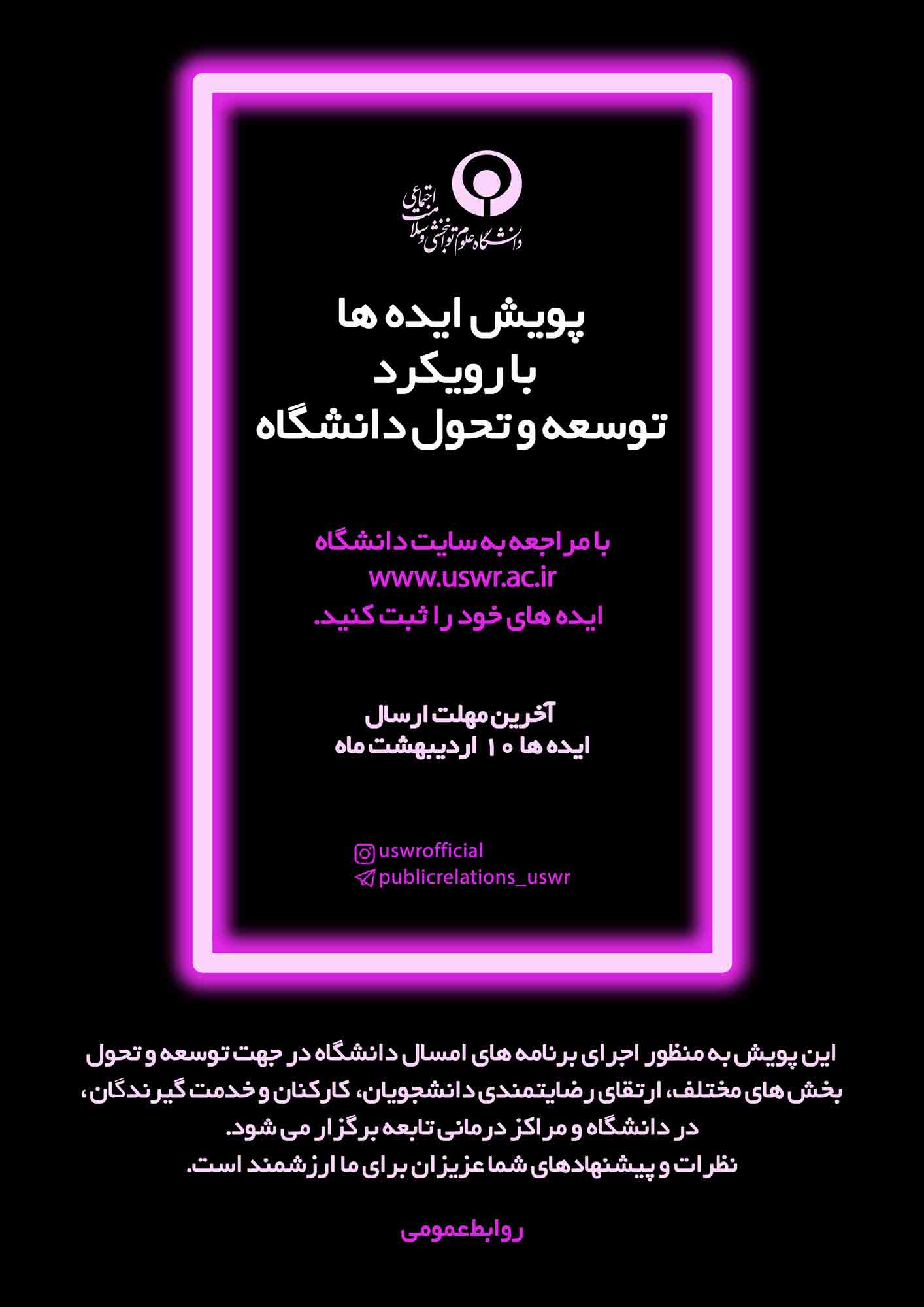 اخبار > تمدید پویش « ایده ها با رویکرد توسعه و تحول دانشگاه » تا پایان اردیبهشت ماه