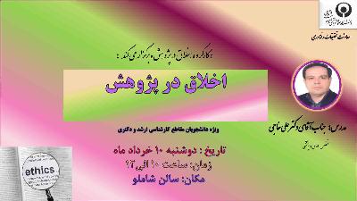 اخبار > برگزاری کارگاه " اخلاق در پژوهش " / ساعت 10 روز دوشنبه، سالن دکتر شاملو