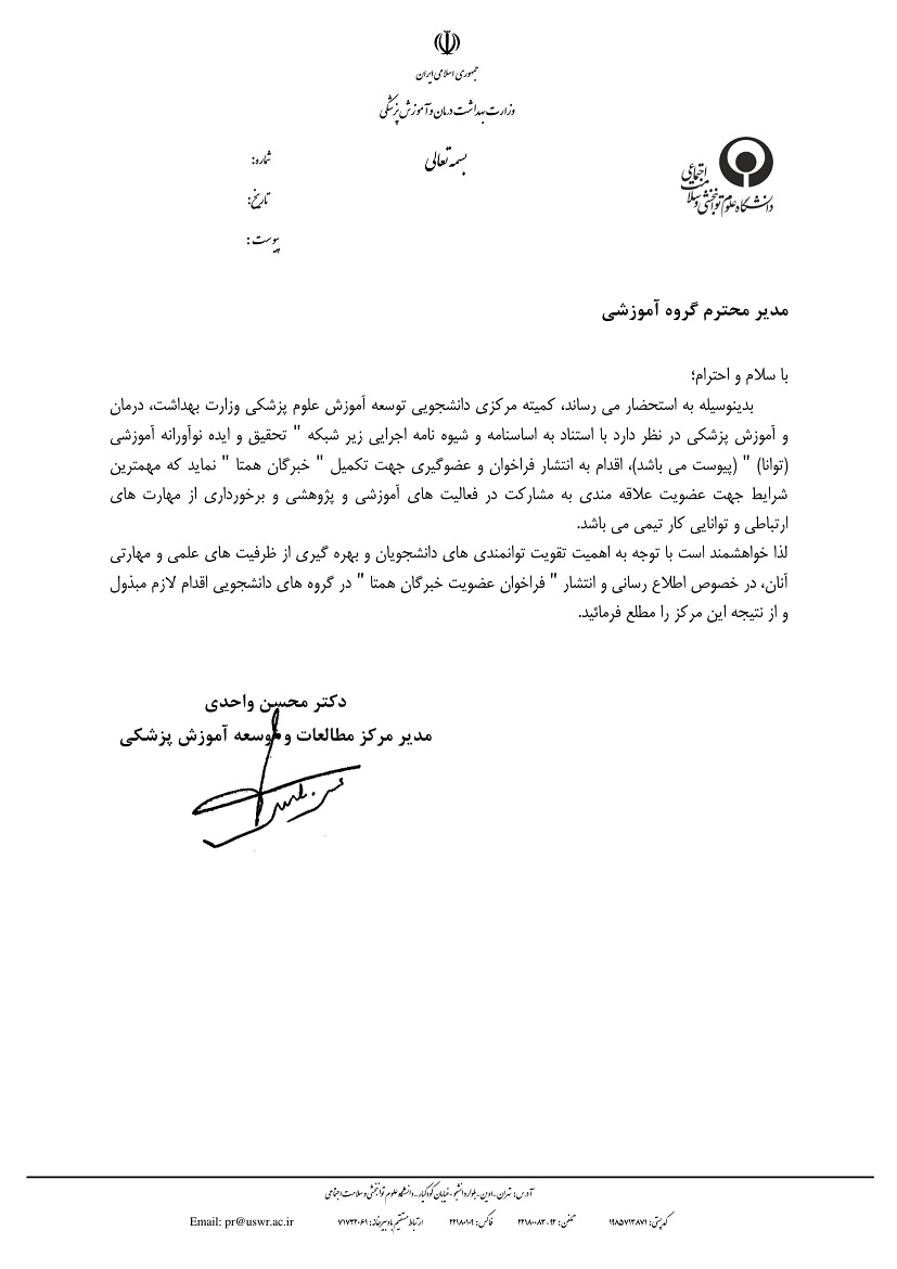 اخبار > انتشار فراخوان و عضوگيري خبرگان همتا