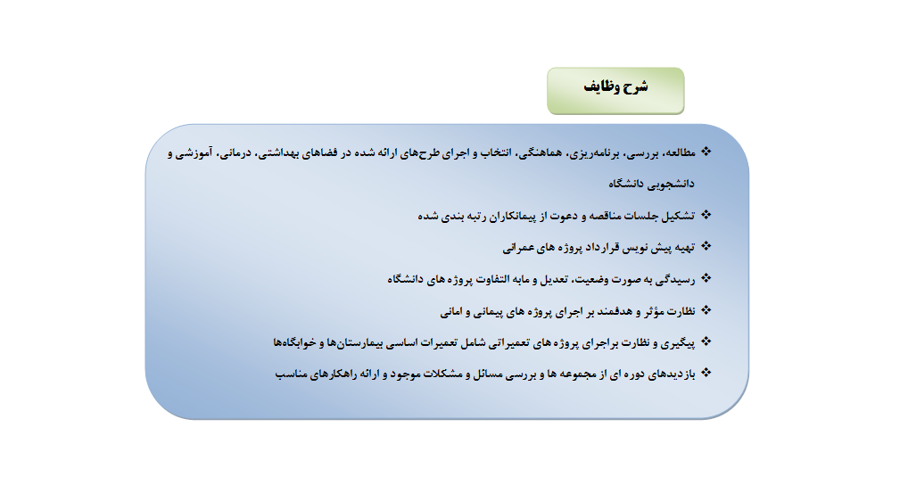 شرح وظایف مدیر منابع فیزیکی و طرح های عمرانی